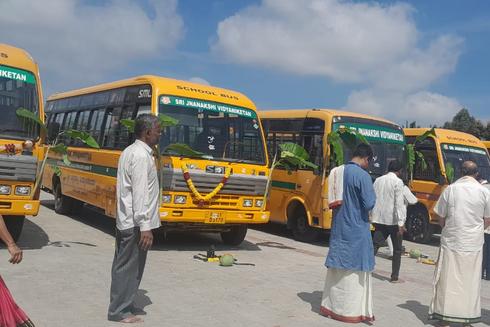 Ayudha Pooja was celebrated in our school on 1st October 2025 with great devotion and enthusiasm. As part of the celebration, pooja was performed for all the school buses as per our regular tradition. The entire bus crew, including our ayahmas, took part in the ceremony with sincere dedication.