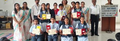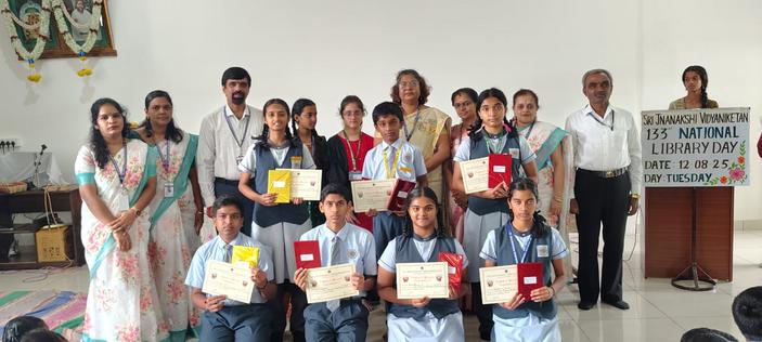 Library day was celebrated on 12th August 2025 Tuesday, mark as the 133rd Birth Anniversary of Dr. S.R. Ranganathnan Father of Indian Library Science, at Sri Jnanaskhi Vidyaniketan. Chief Guests for the day was Kumari. Shriya Vinay Darbal of class 6E. Kumari Adithi B. Chakravarthy of class 7B and Shri. Ishwar bhat Vision Co-Ordinator, Principal ma’am, Vision Co-Ordinator and HOD of Library Department Accompanied the guests with Guard of Honor by N.C.C. Cadets. The programme started with lighting of Lamp by the Chief Guests and Invocation song by Pranamya and Team. We had Welcome speech by Agamya Aravinda of Class VF. Speech in English by Poorvika v. Rao of Class IXB. English Book Review by Adisha Nayana Singhof Class VIID and Chiranth of class IVB, Kannada Book Review by Lahari M.S. of class IXE and Thanish.R. of class VF, Sanskrit book Review by Ananya B. of Class XE and Pranjali B.S. of Class VG, Hindi book review by Mahi H. of Class VIIIE and Trisha Kushwaha of Class VG, One of our Chief Guest Kumari Sriya V. Darbal shared her experience how she utilize the Library books during the Library periods, how her father motivated her for reading books her father donated a wildlife photography book to her, she was written a book called “THE SUPER GIRL” while she was studying in IVth standard. Another Chief guest Kumari. Adithi B. Chakravarthy of Class 7B, she was shared her experience during her books writing she was written three books she explained her books and its content she whole heartedly thanked the management and library department for the opportunity she got. Our Principal Jaya J. address the Students and Teachers spoke about the importance of Libraries and reading of Library books. and congratulated the all Book Review students, motivated the students to write more books and publish their books Principal ma’am and Vision Co-Ordinator Distributed 54 “VORACIOUS READERS OF SJV LIBRARY” and 76 “INQUSITIVE READERS OF SJV LIBRARY” Awards to the students of Class 1 to 10.